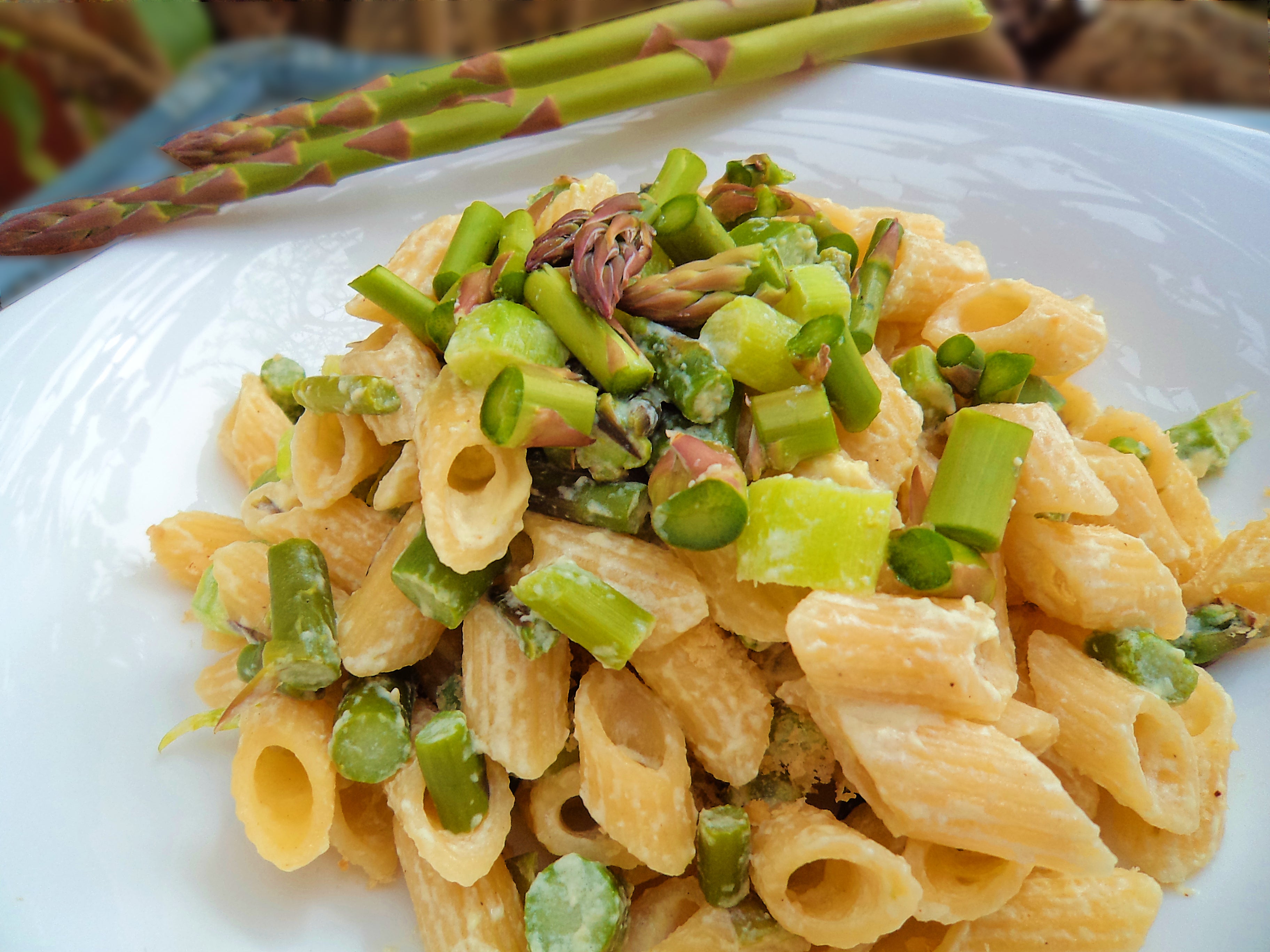 In the photo, I used gluten-free pasta made with corn, buckwheat and quinoa. This asparagus pasta tastes even better when served with a generous sprinkle of grated (no) cheese.