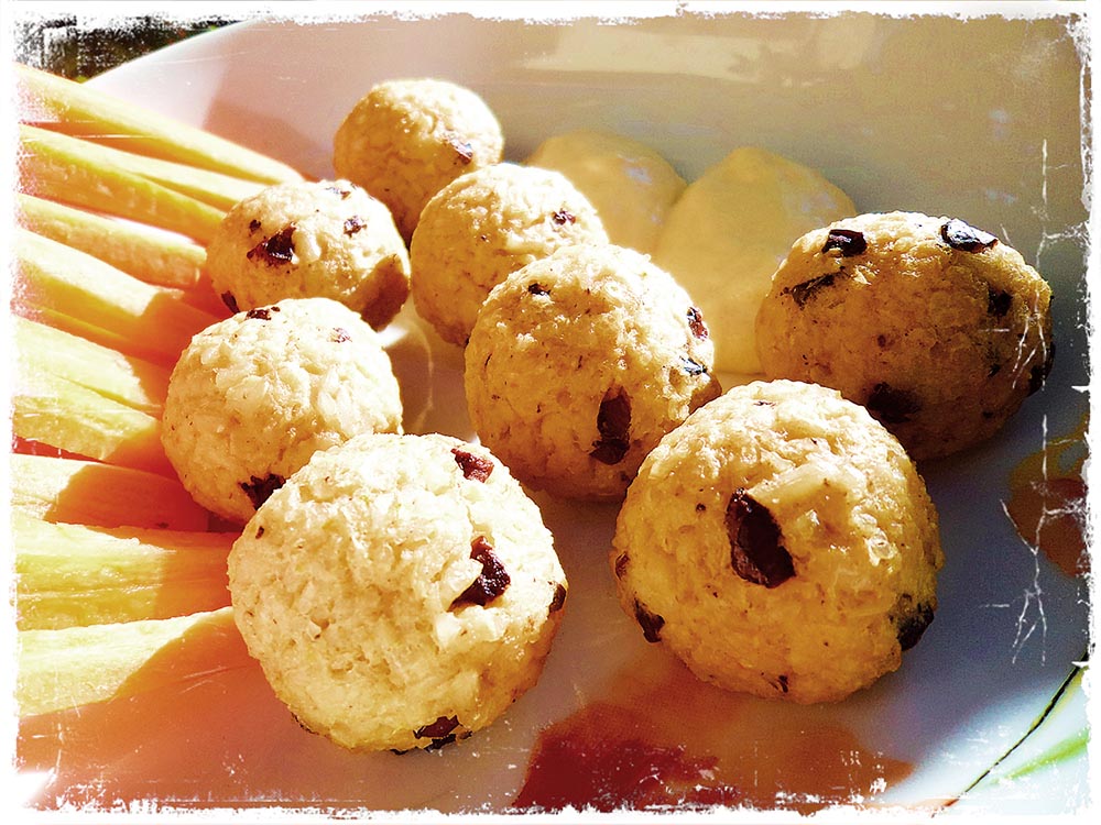 This recipe is really simple, but so yummy! The ingredients are 100% whole food and contain quality nutrients, with a balanced ratio of carbohydrates, proteins and fats. The nutritional yeast provides a good amount of B vitamins and, coupled with the olives, makes the balls really flavorful!