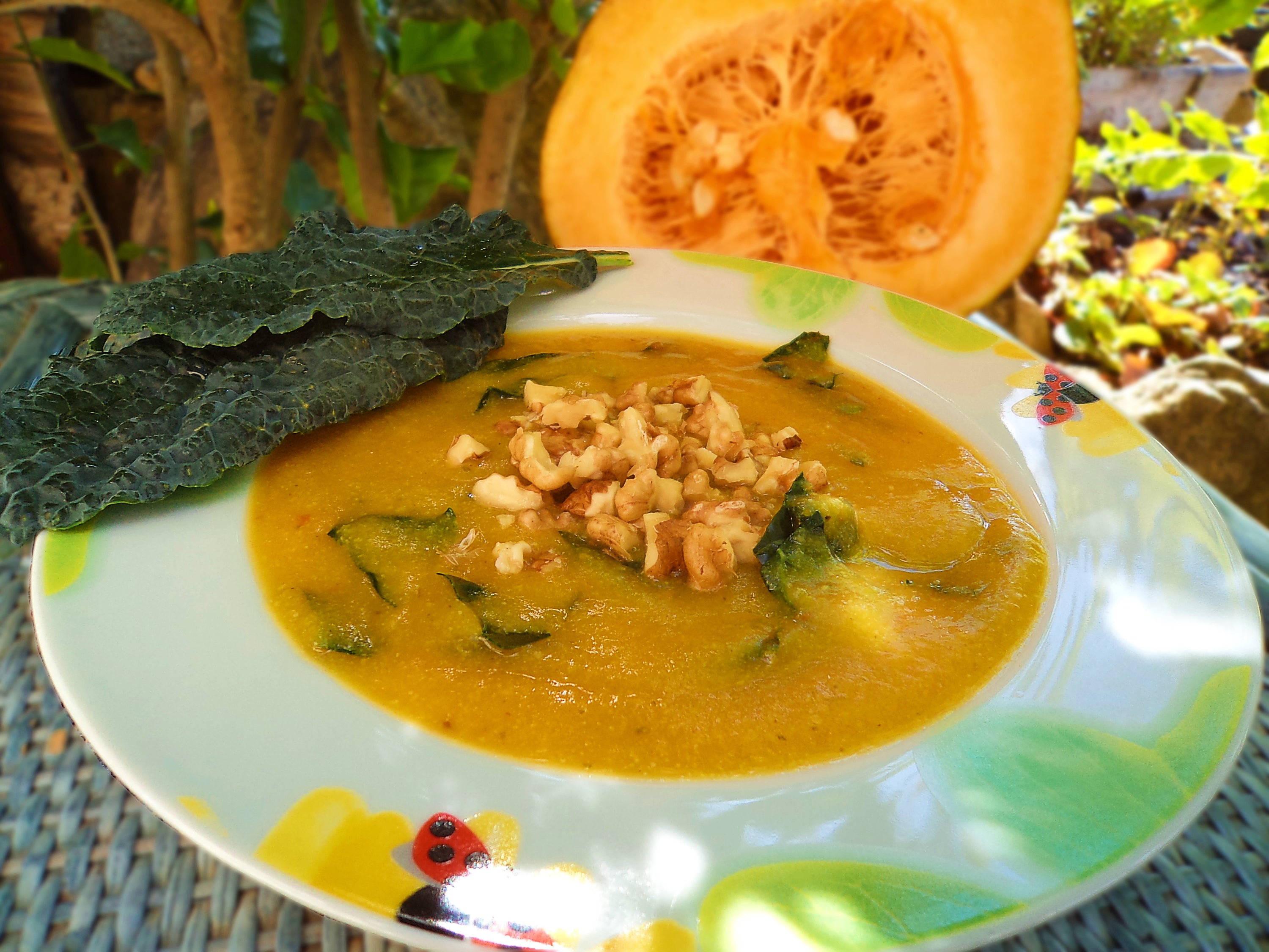 This delicious soup is cooked without oil, the only fats present are the good ones from the walnuts. Adding them at the moment of eating ensures that the omega 3 and omega 6 they contain are not damaged by heat. If preparation times are respected, both cauliflower and black cabbage can produce sulforaphane, a molecule with a powerful anti-tumor and anti-inflammatory action. This is a dish that combines the abundance of vitamins and minerals into a delicious soup.