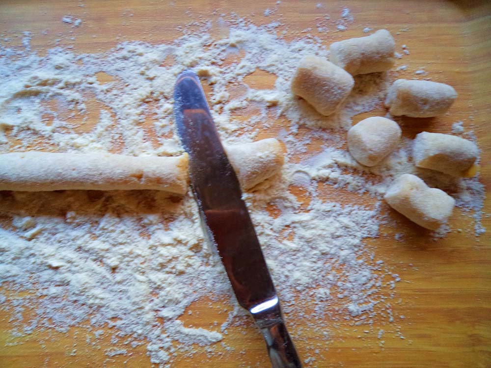 On a floured pastry board, form cylinders of dough, 6/8 to 7/8 inches in diameter. Cut pieces about 1 inch long. Flour them well on each side.