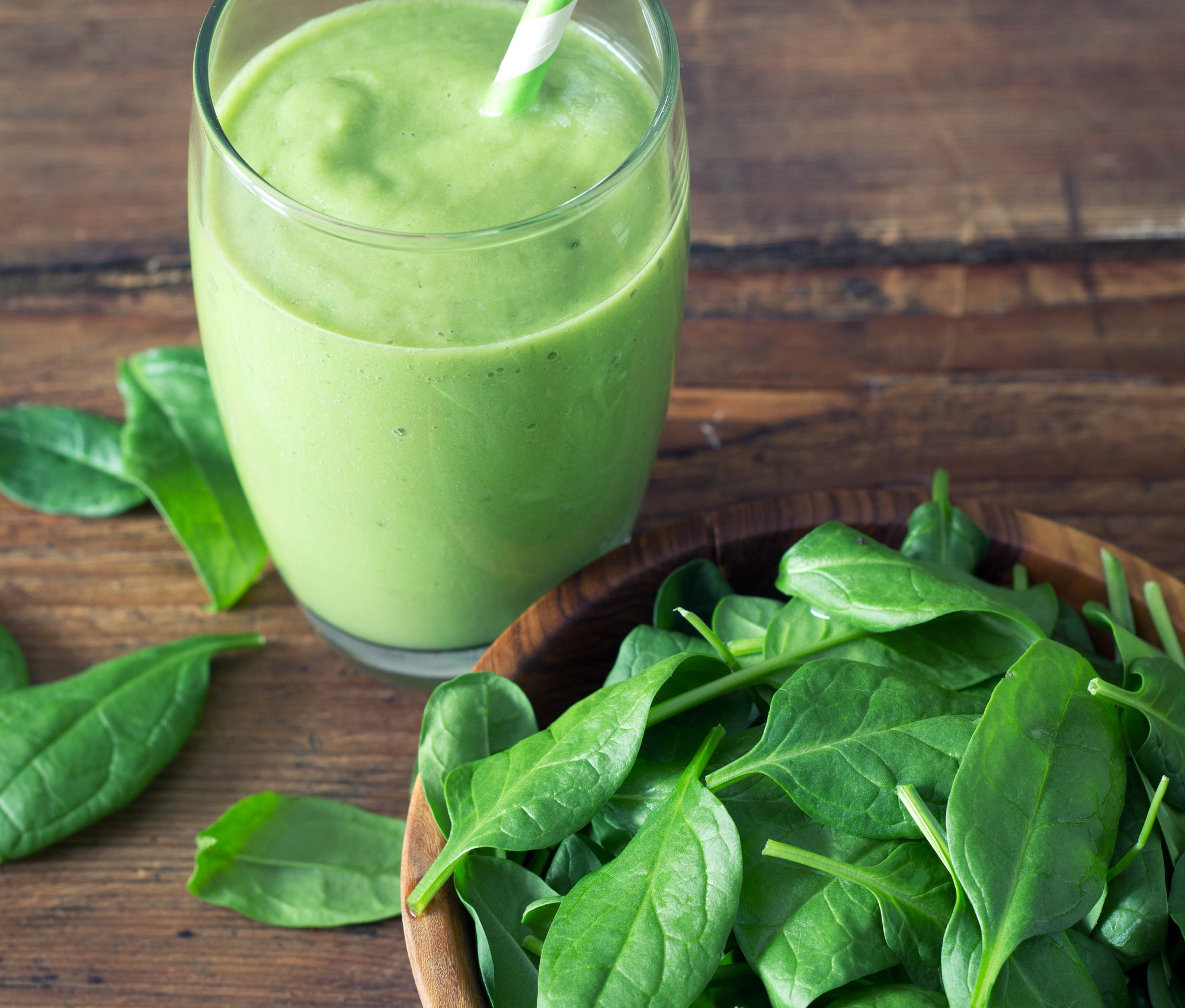 If you are looking to get more greens in your diet, adding spinach to your smoothies is an excellent way to achieve this goal. Pineapple and mango add bursts of sweet flavor and these fruits are also high in antioxidants. In addition, both pineapple and ginger aid in digestive health. Toss in some avocado for a full-bodied creamy smoothie, along with healthy fat, fiber, potassium, and B vitamins.