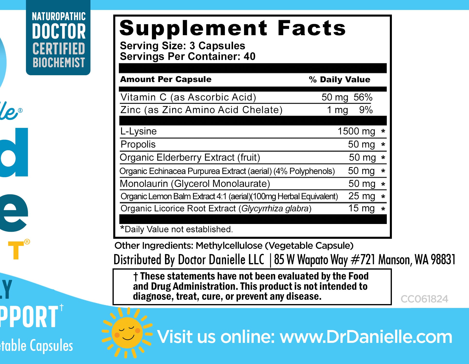 Dr. Danielle’s Cold Sore Assist helps you fight against embarrassing cold sores. Take daily (for best results) or begin taking to support a current cold sore outbreak.†